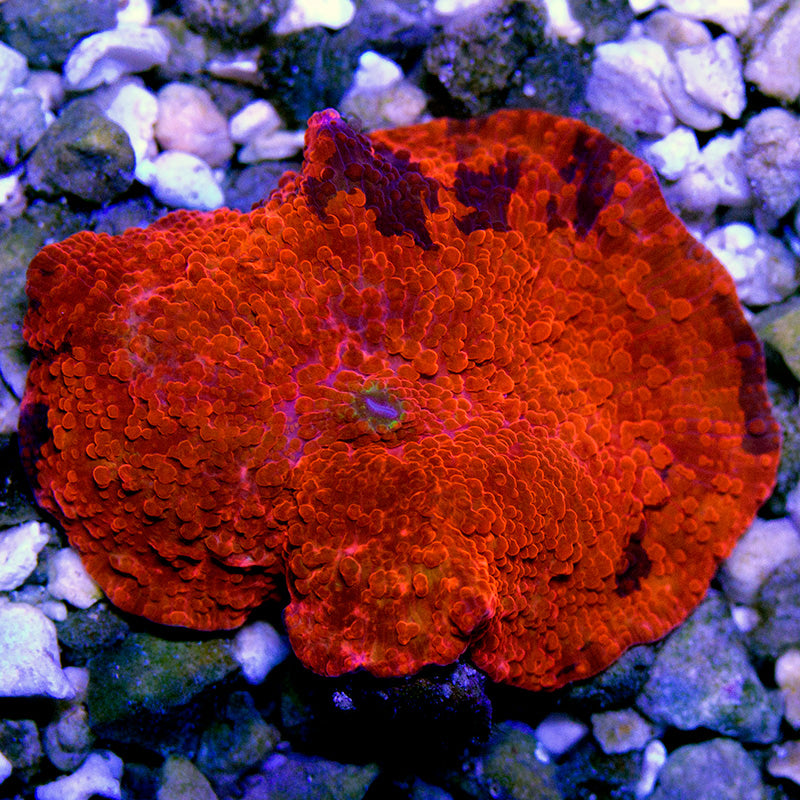 Size: ~1.25+" loose polyp. We keep our mushrooms on Caribsea Florida Crushed Coral (Geo Marine old school 3-5 mm grain size) to prevent growing on eggcrate. We ship the polyps loose with substrate grains attached to foot. If requested, we're happy to mount to plugs at no additional charge prior to shipping.