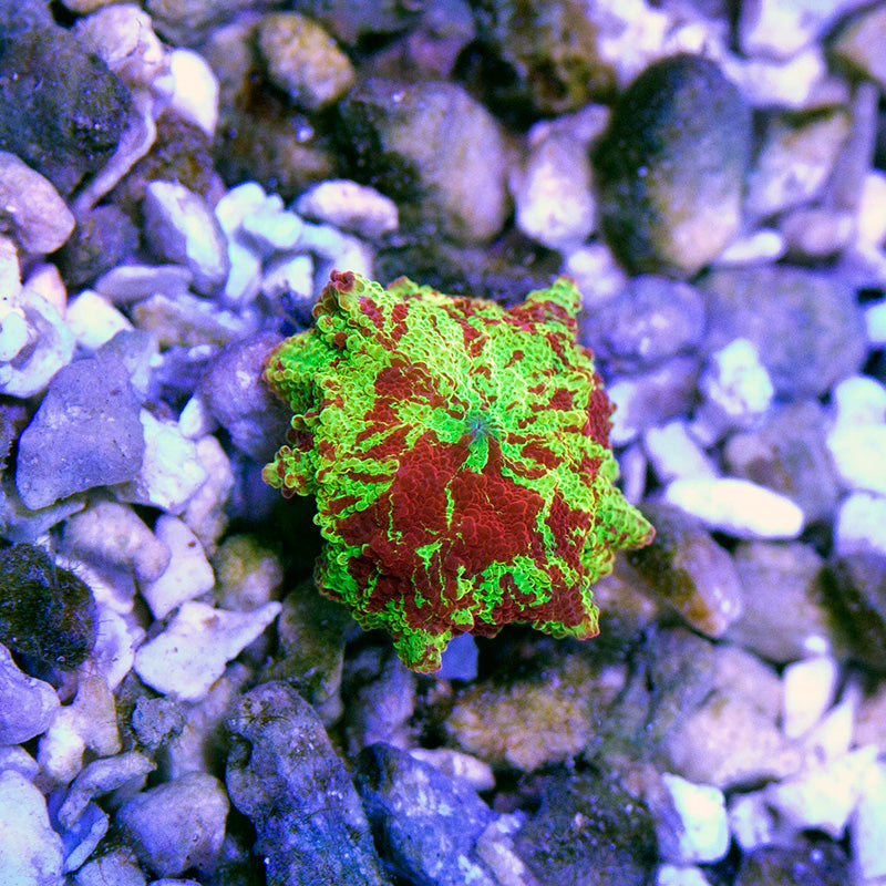 Size: ~3/4" loose polyp. We keep our mushrooms on Caribsea Florida Crushed Coral (Geo Marine old school 3-5 mm grain size) to prevent growing on eggcrate. We ship the polyps loose with substrate grains attached to foot. If requested, we're happy to mount to plugs at no additional charge prior to shipping.